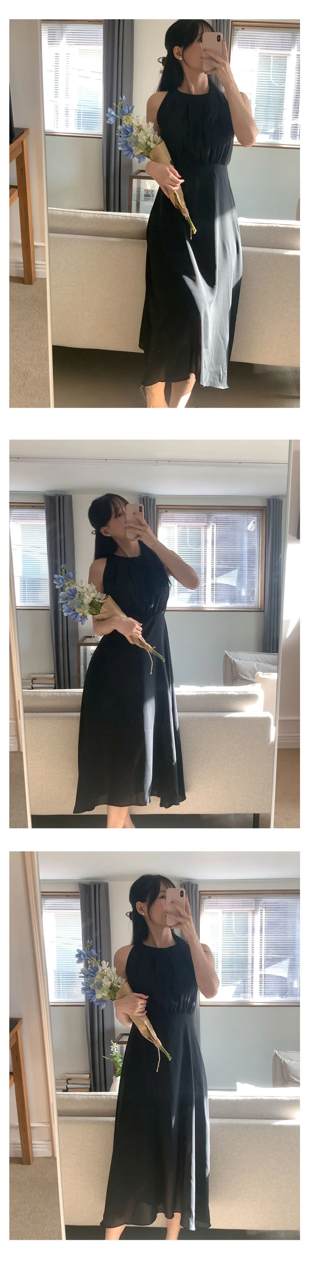 ♥削肩雪紡長洋裝-2colors