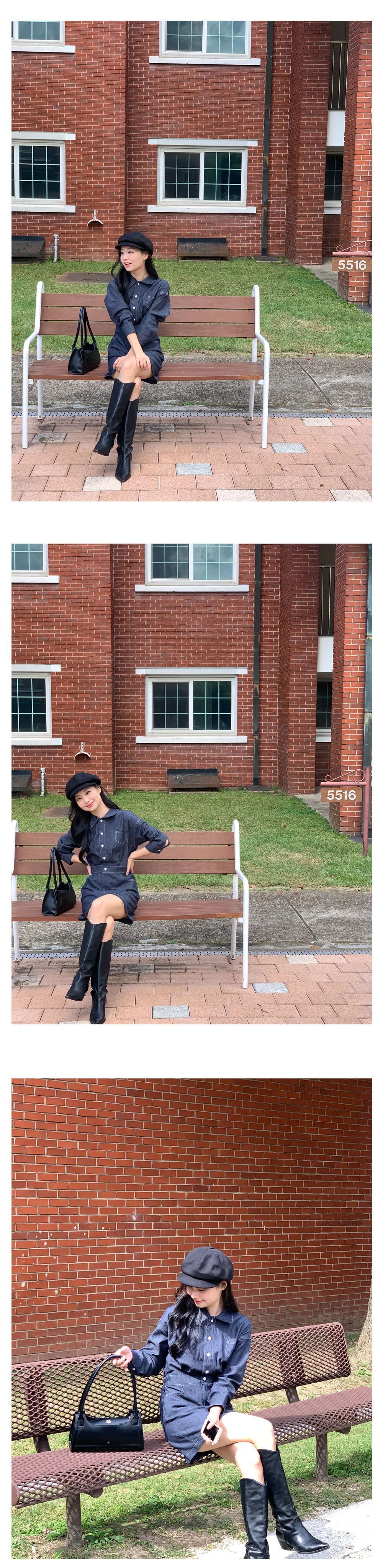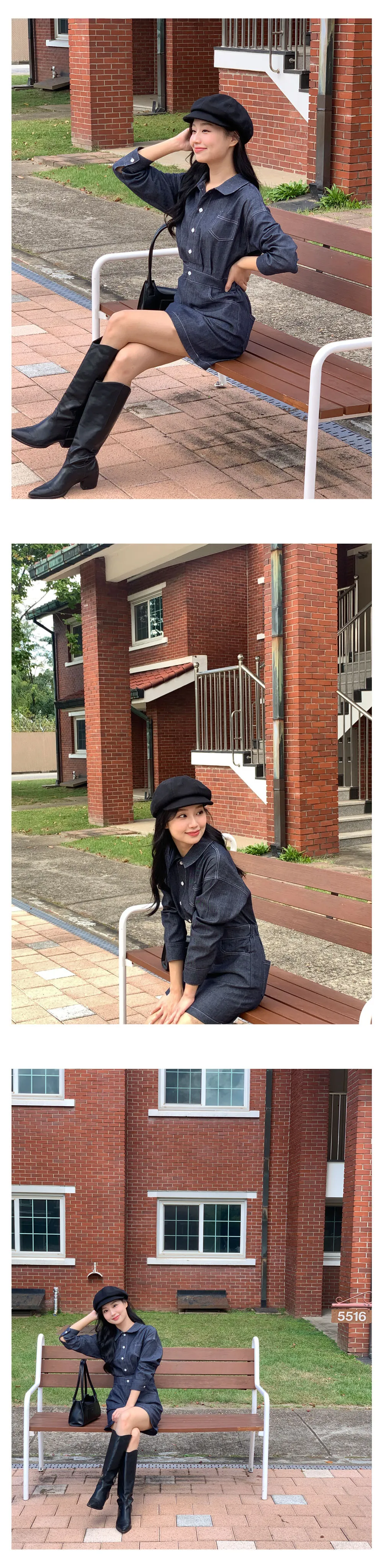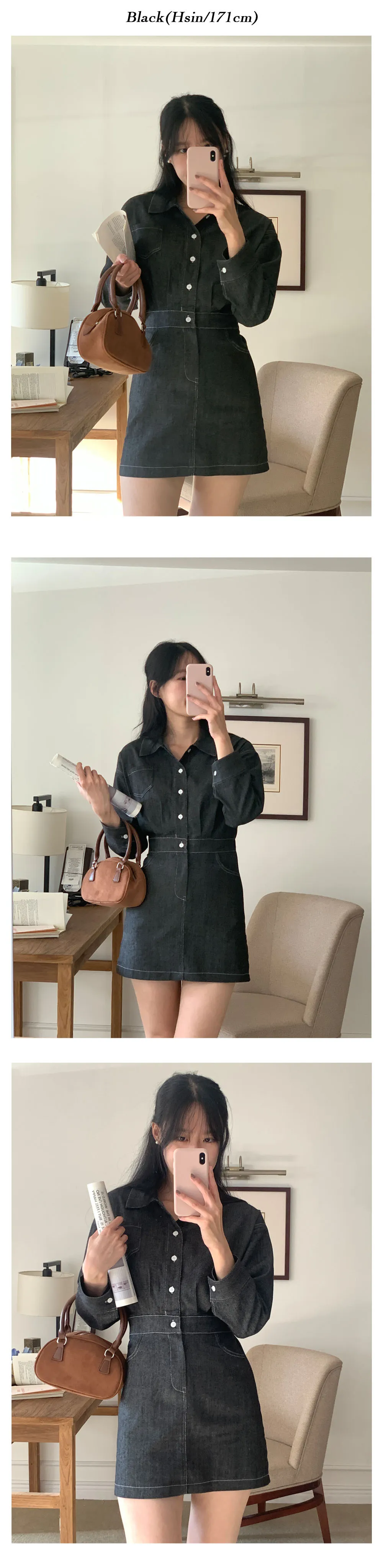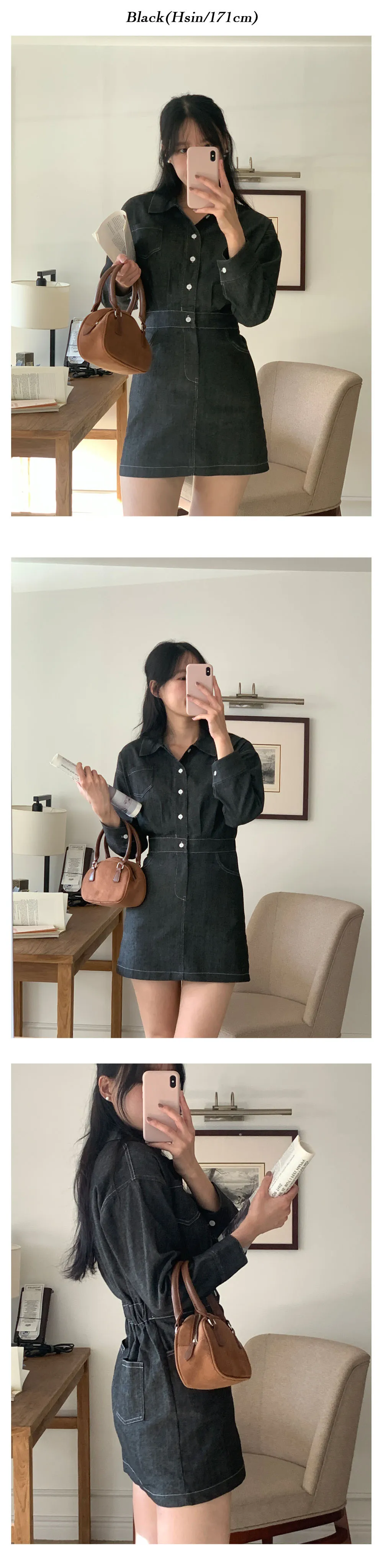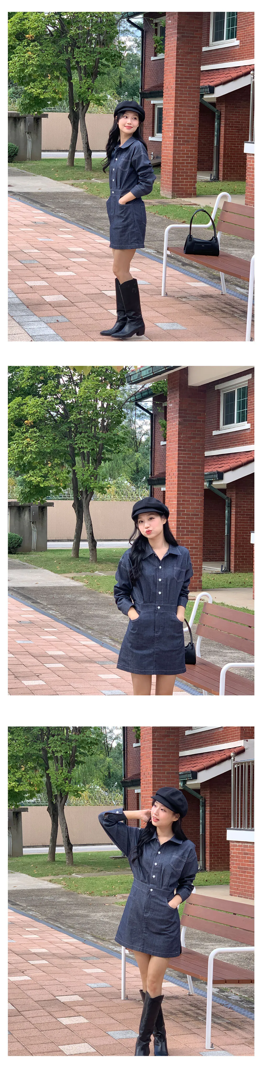 丹寧口袋連身洋裝-3colors