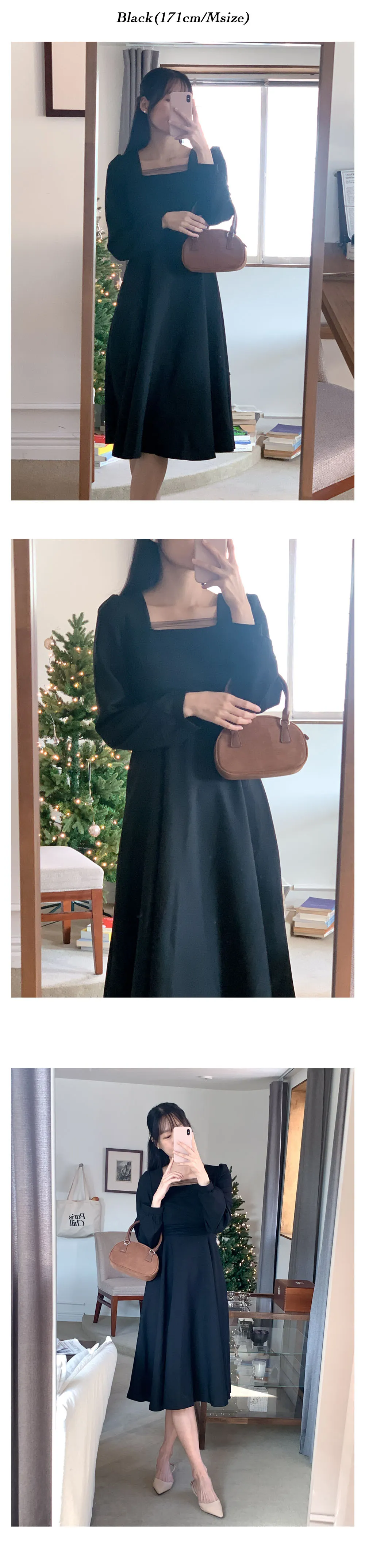 黑S現貨♥chérie紗拼接長袖洋裝-2colors