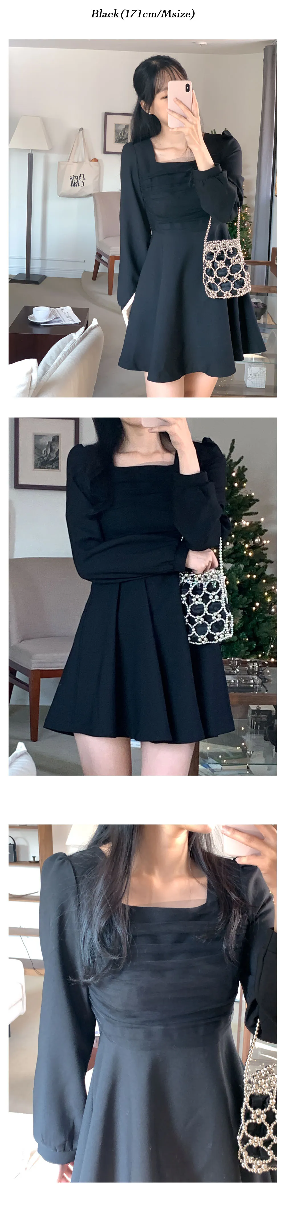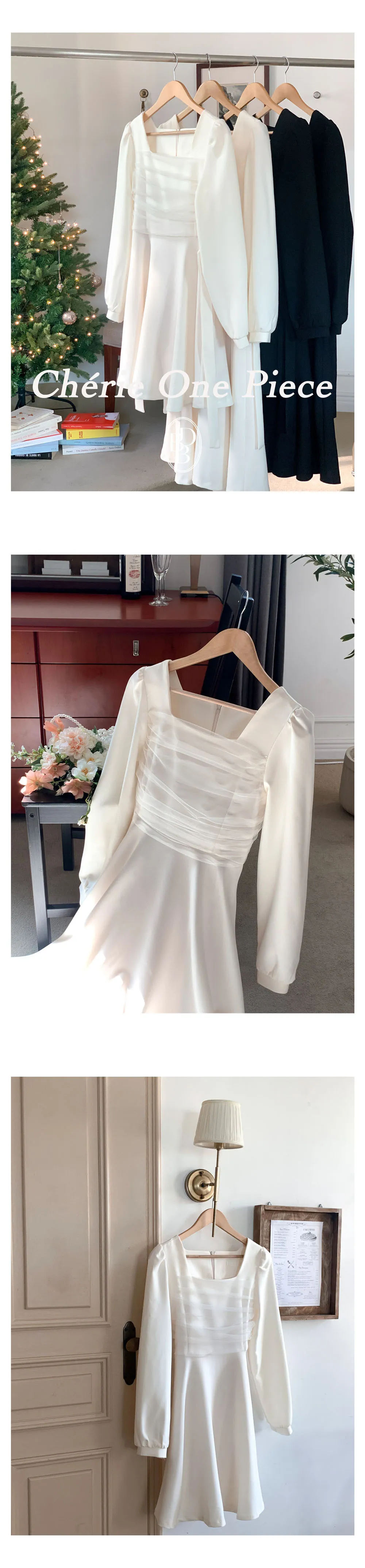 黑S現貨♥chérie紗拼接長袖短洋裝