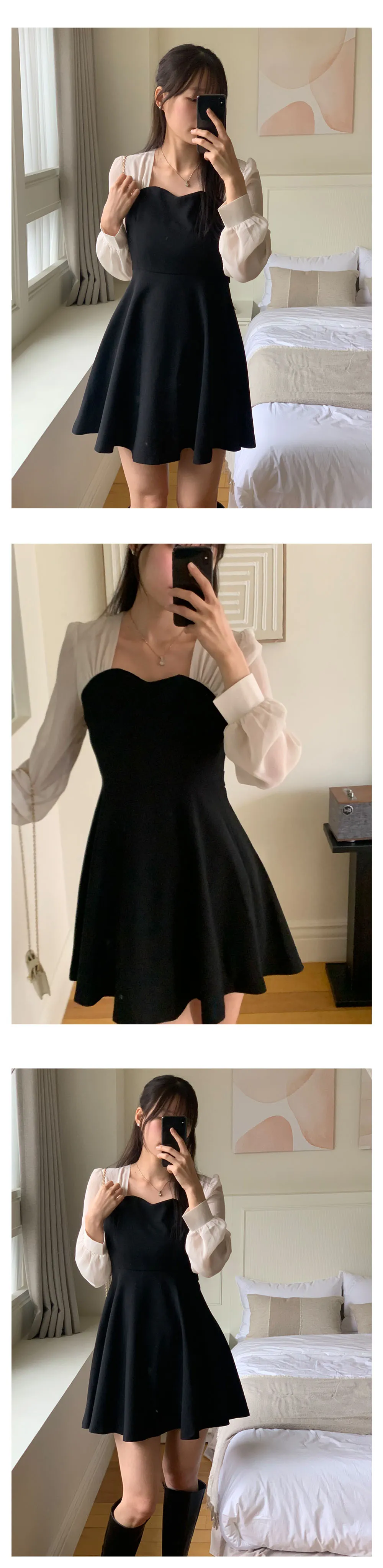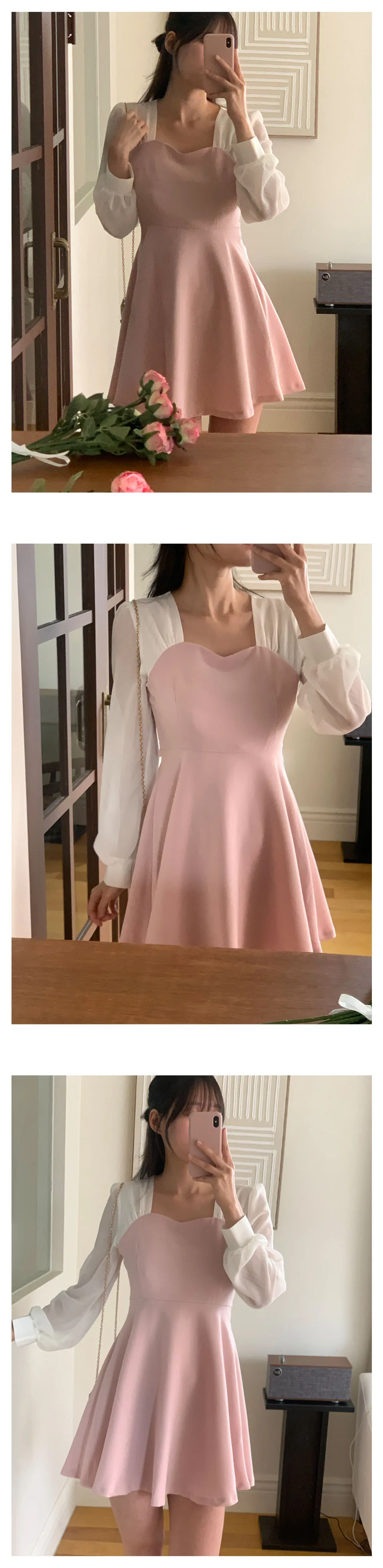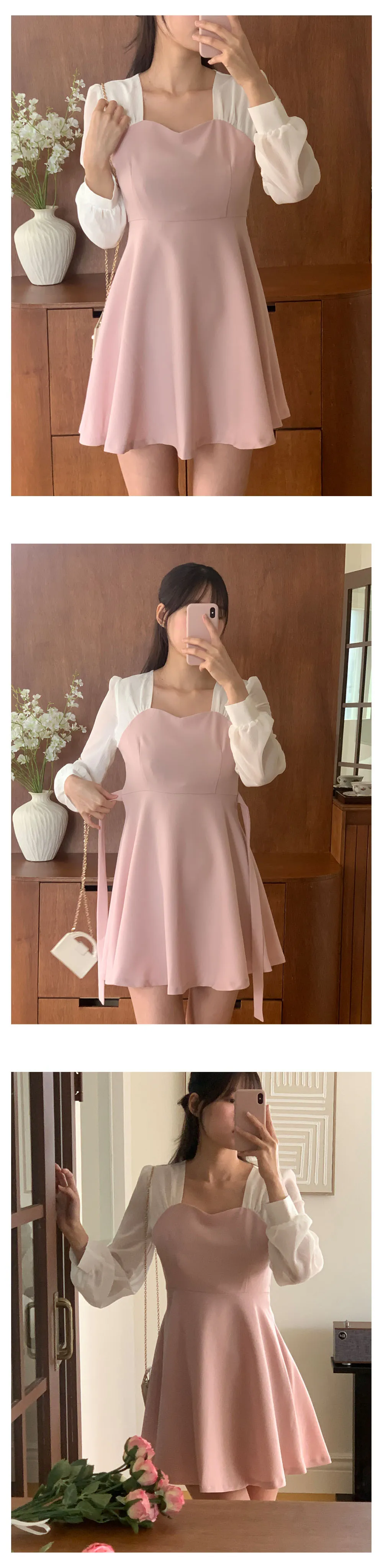 spring♥︎透膚拼接愛心領短洋裝-3colors