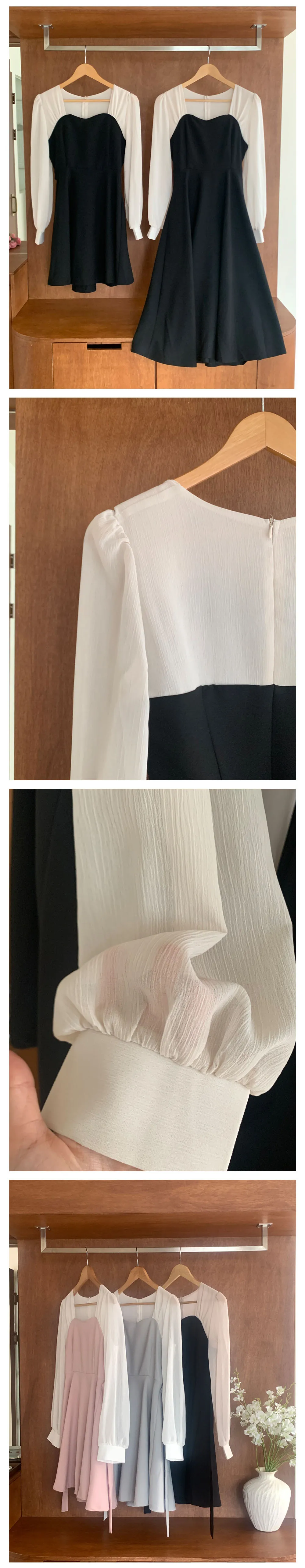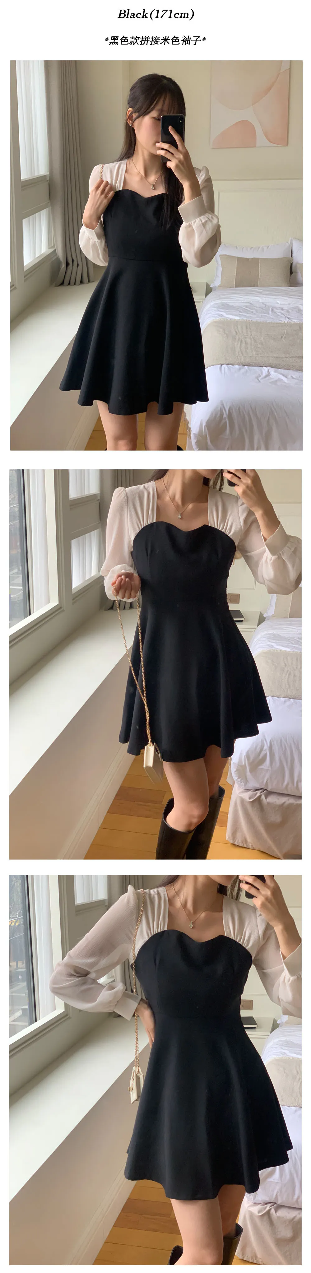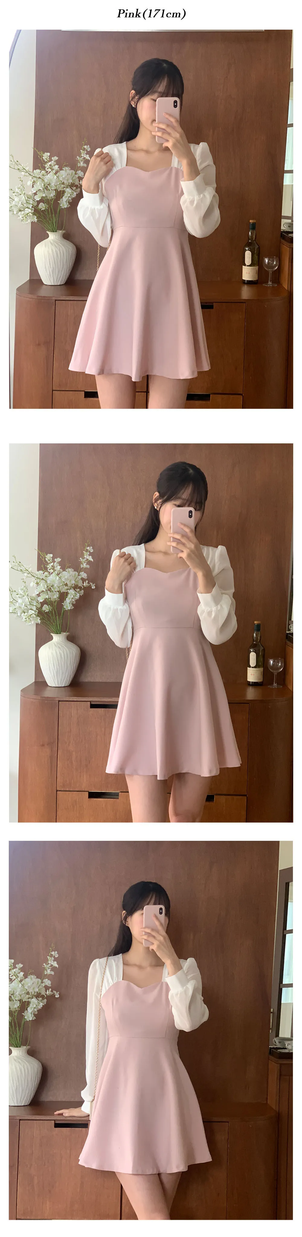 spring♥︎透膚拼接愛心領短洋裝-3colors