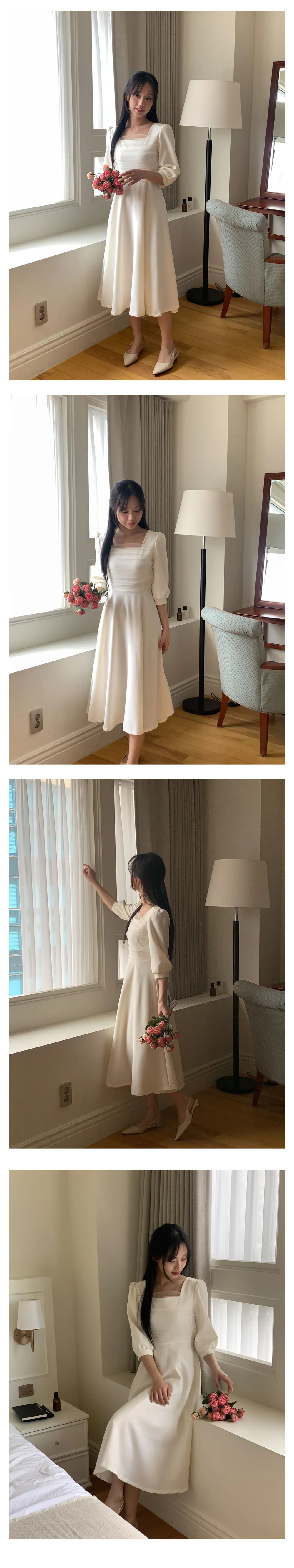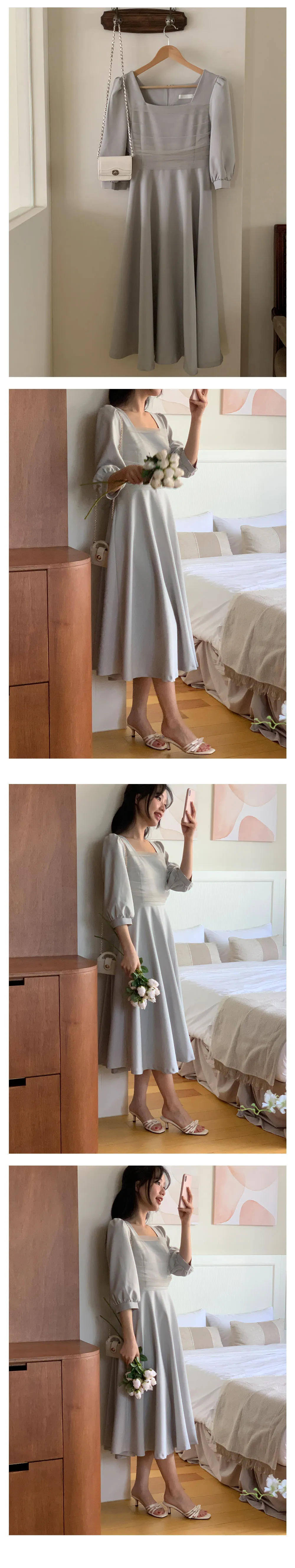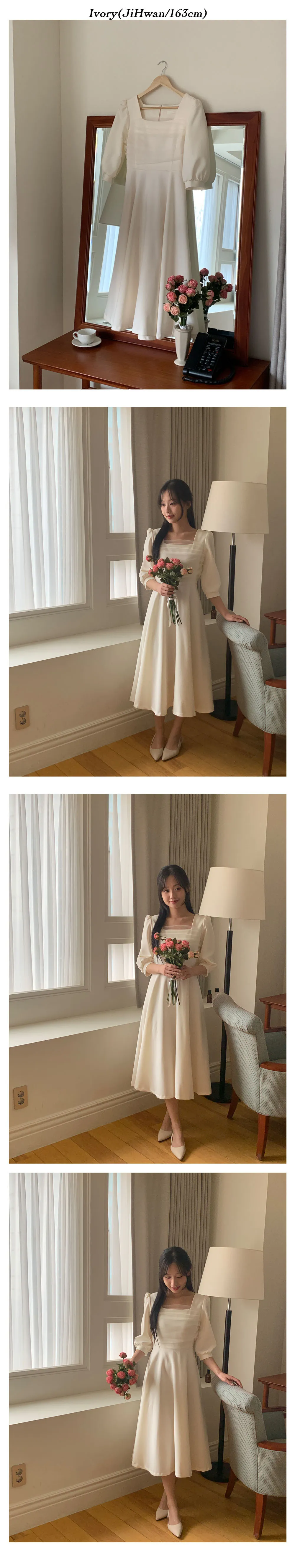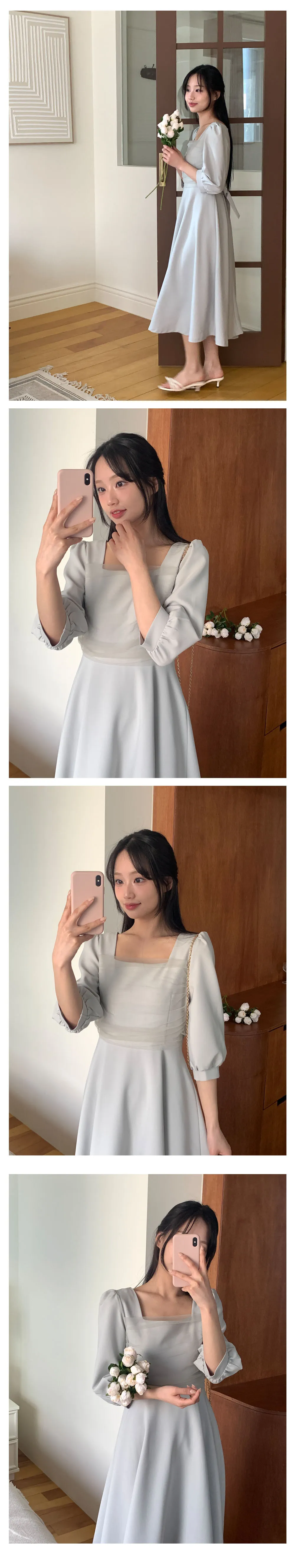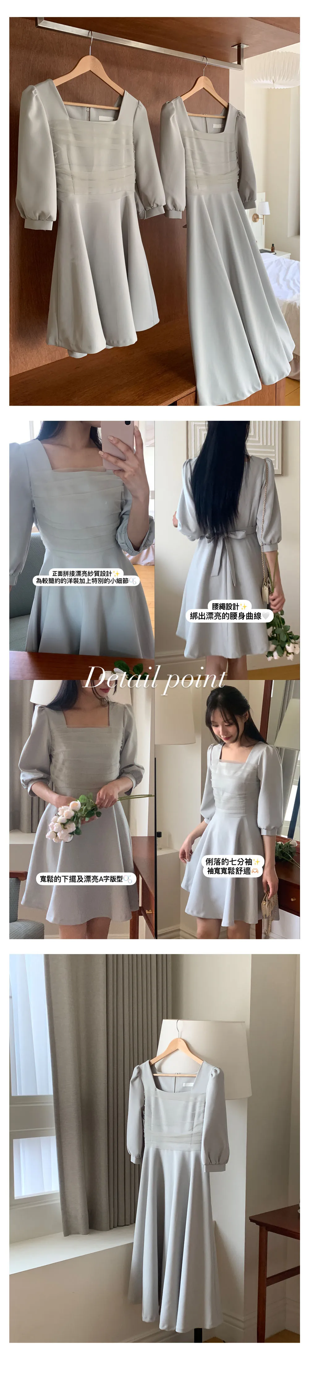 部份現貨♥chérie紗拼接七分袖長洋-4colors