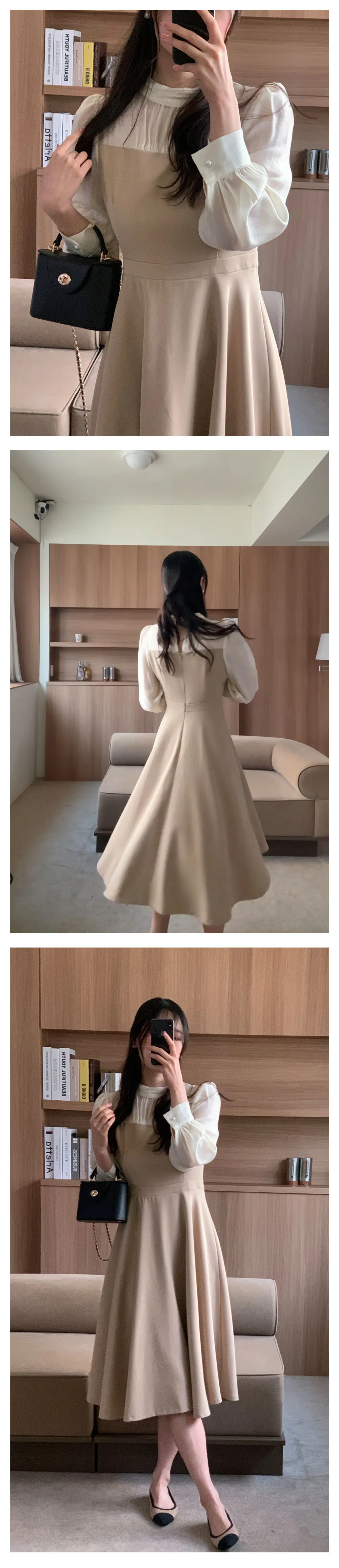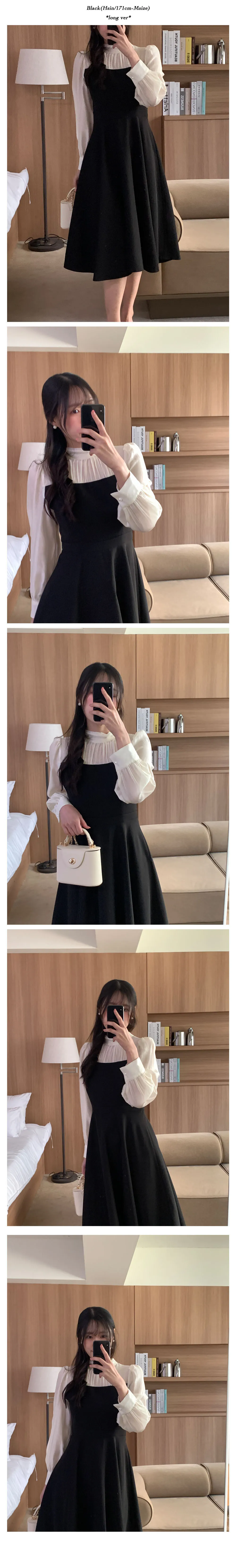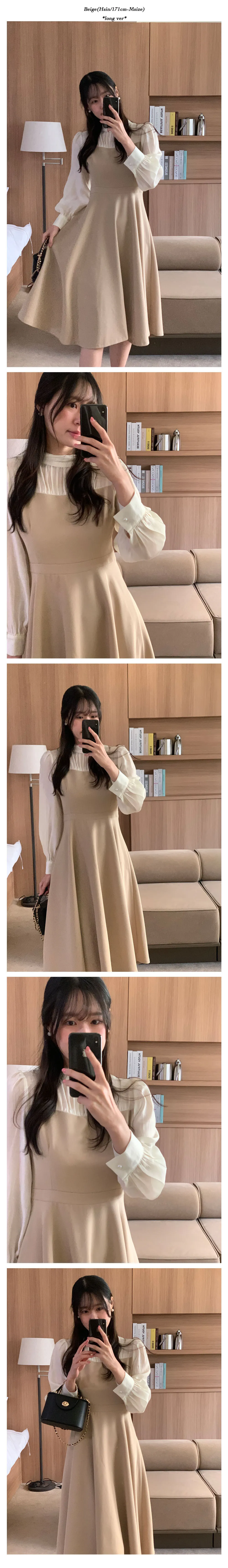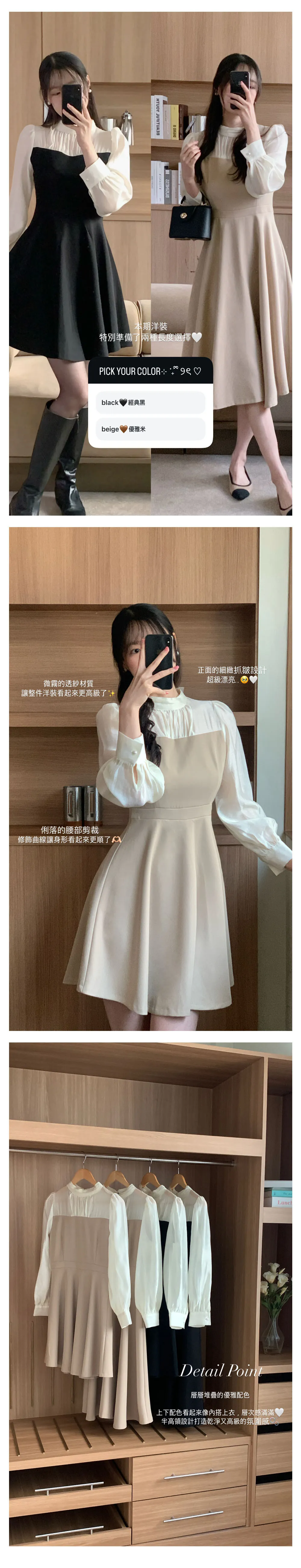 部份現貨♥半高領透膚拼接長洋-2colors