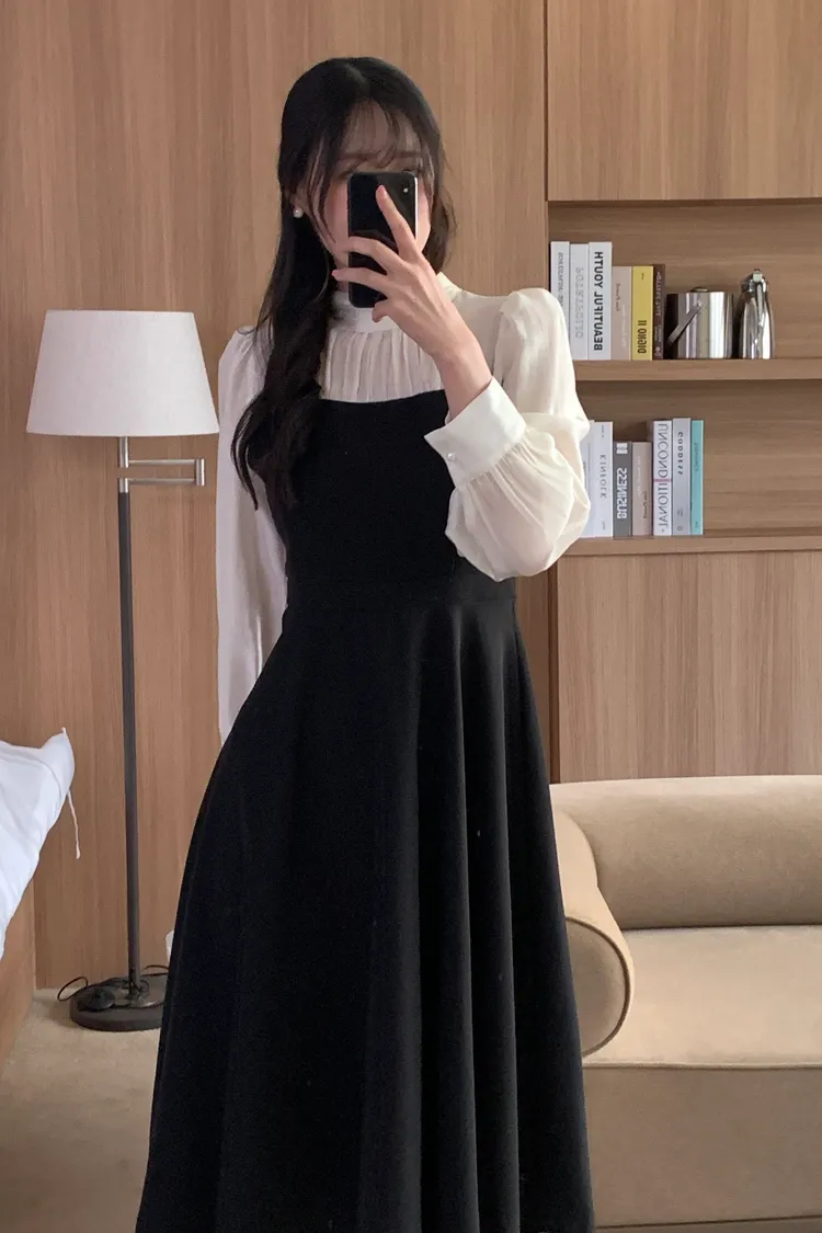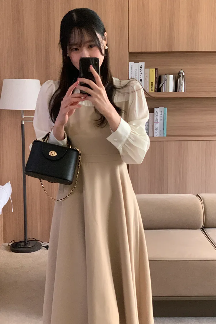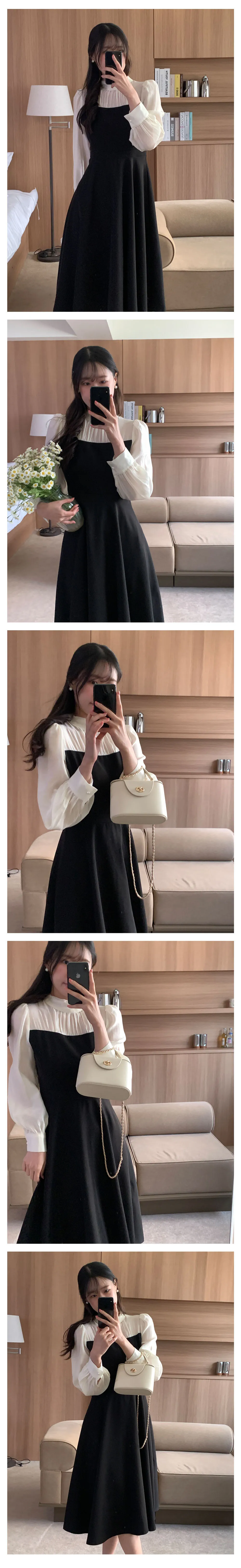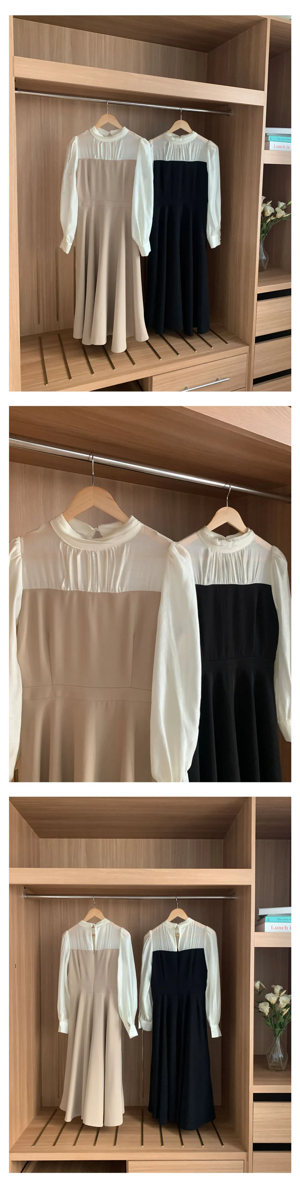 部份現貨♥半高領透膚拼接長洋-2colors
