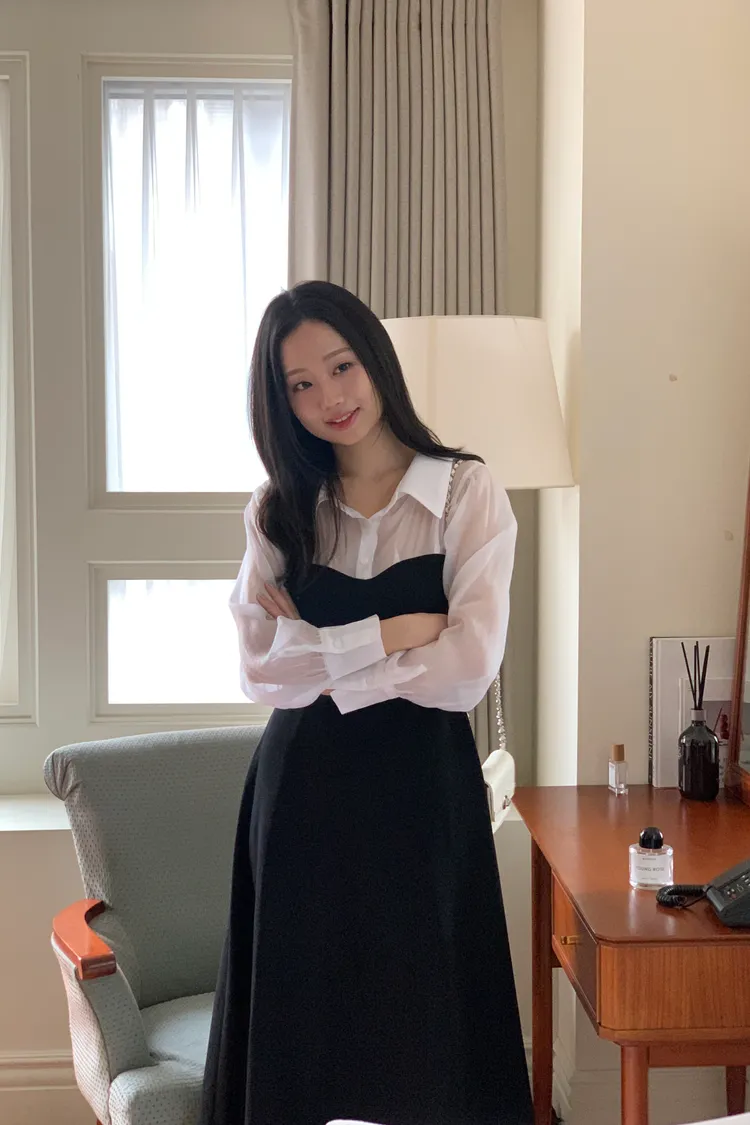 Sora淺藍+黑色洋裝(淺藍帶有一點紫色感)