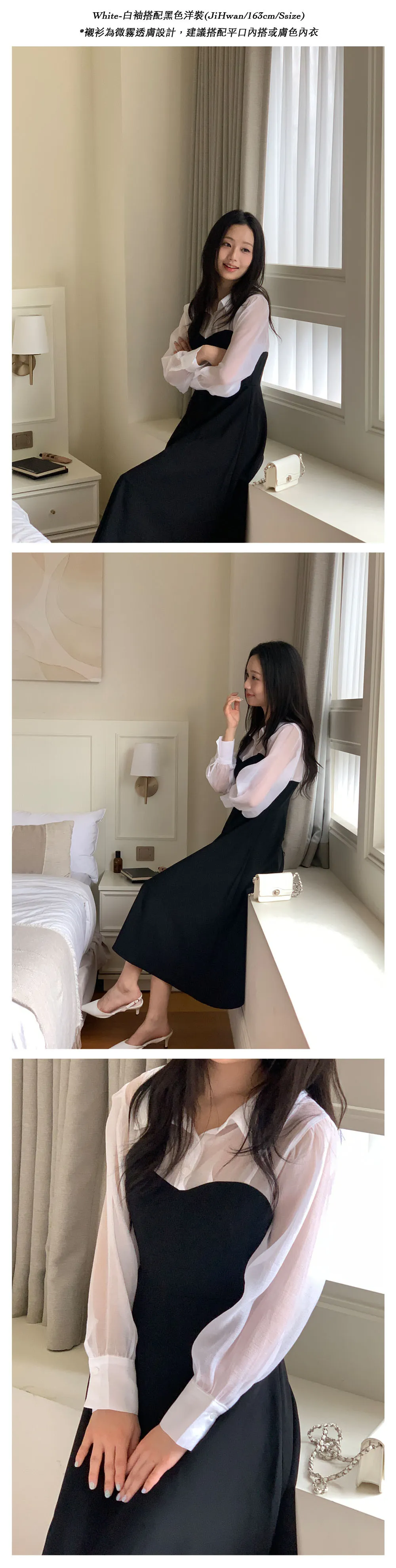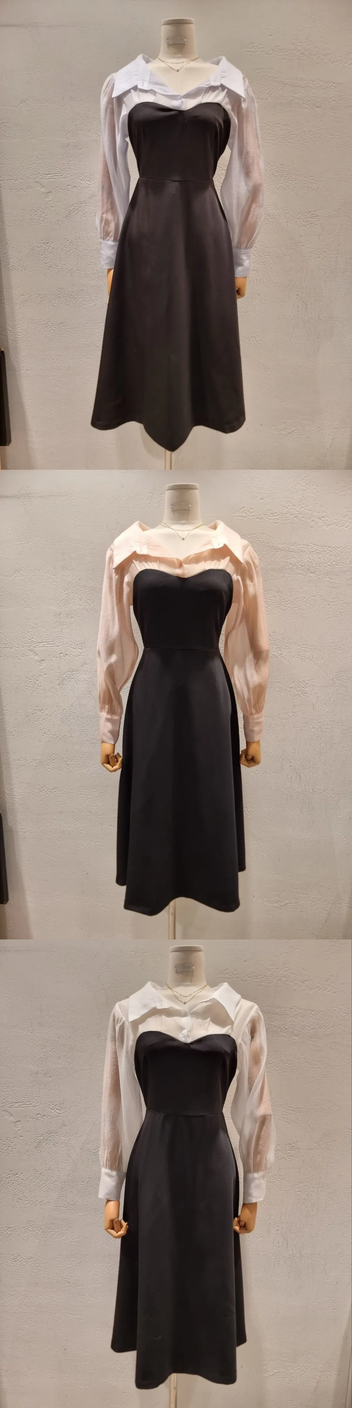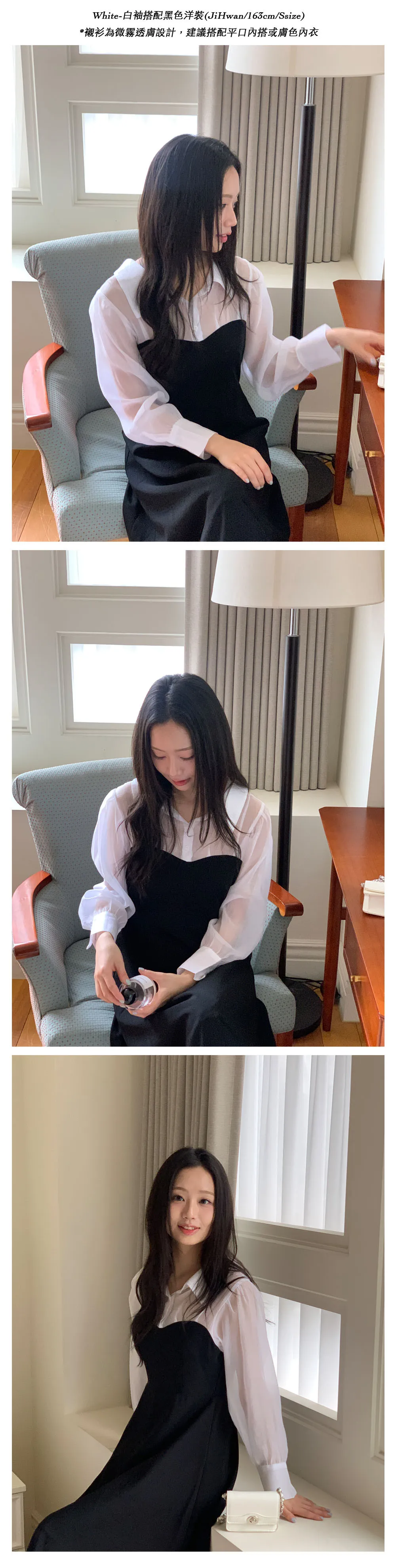 S現貨)愛心領拼接♥翻領襯衫長洋裝-3colors