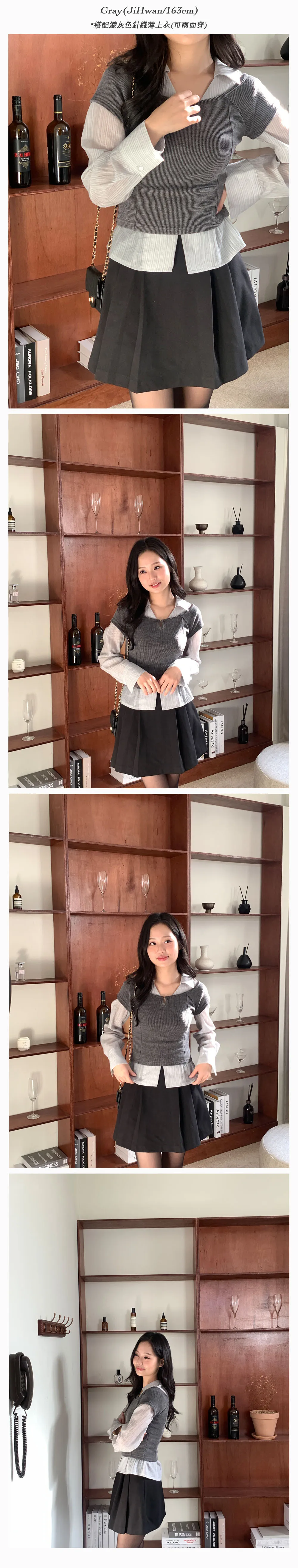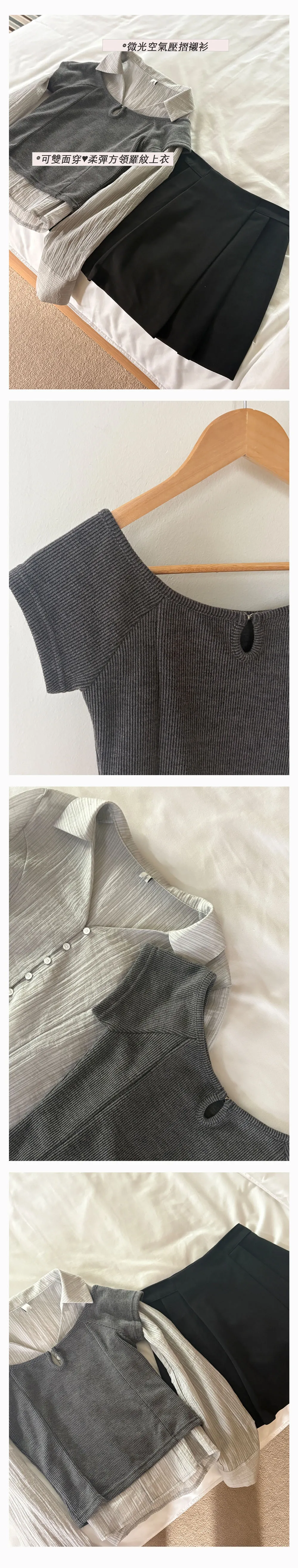 可雙面穿♥柔彈方領羅紋上衣-1colors