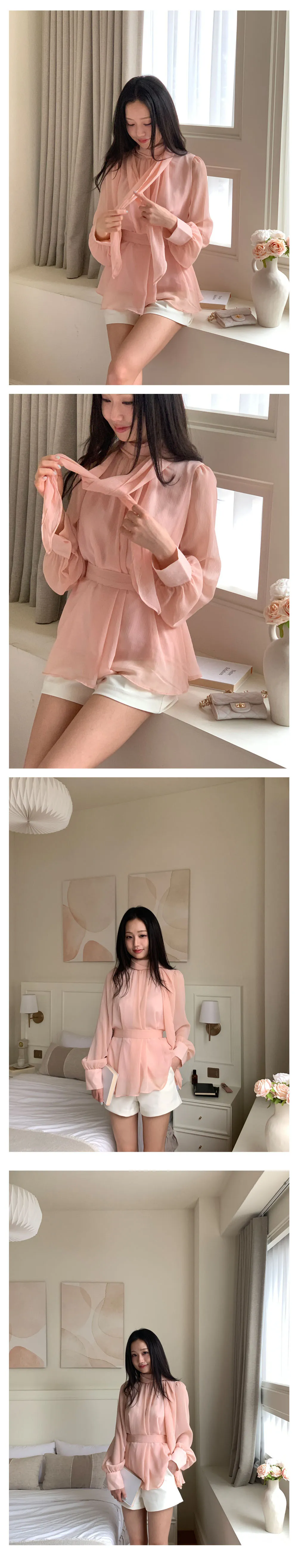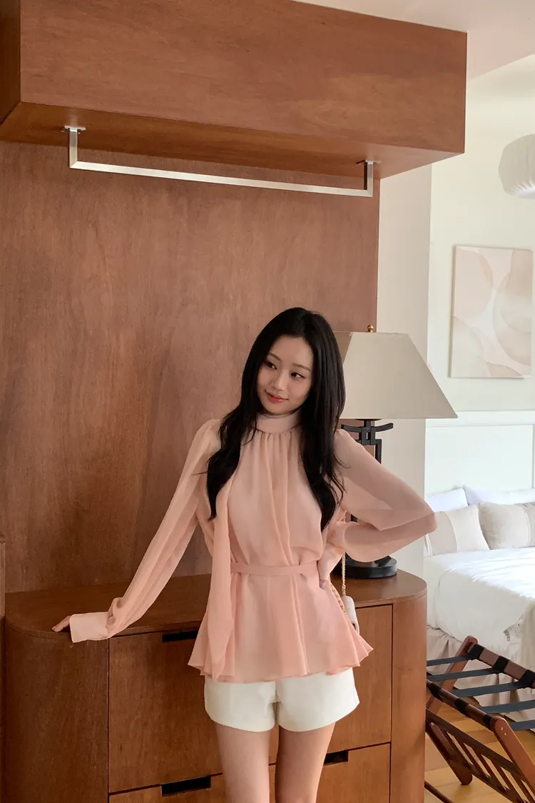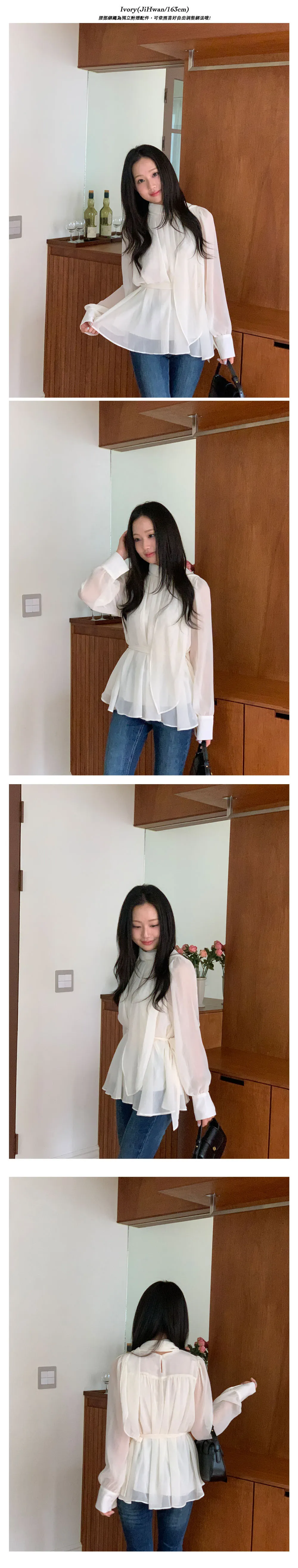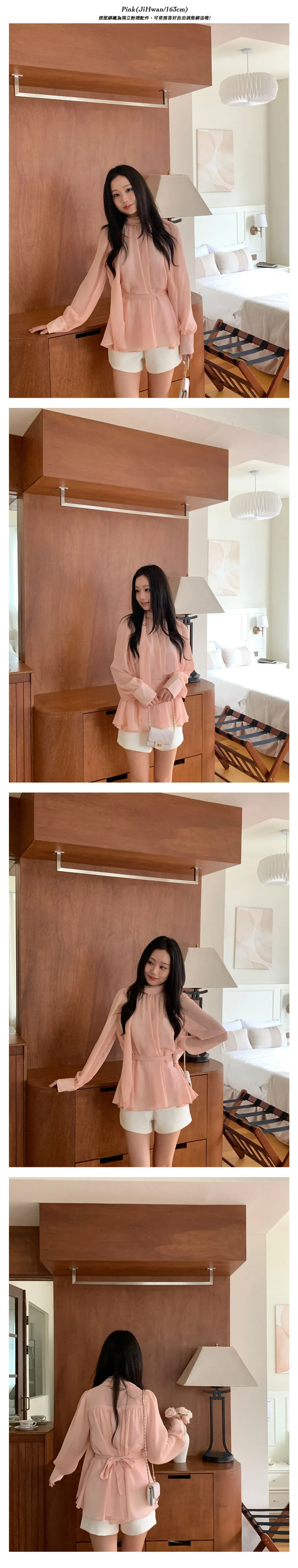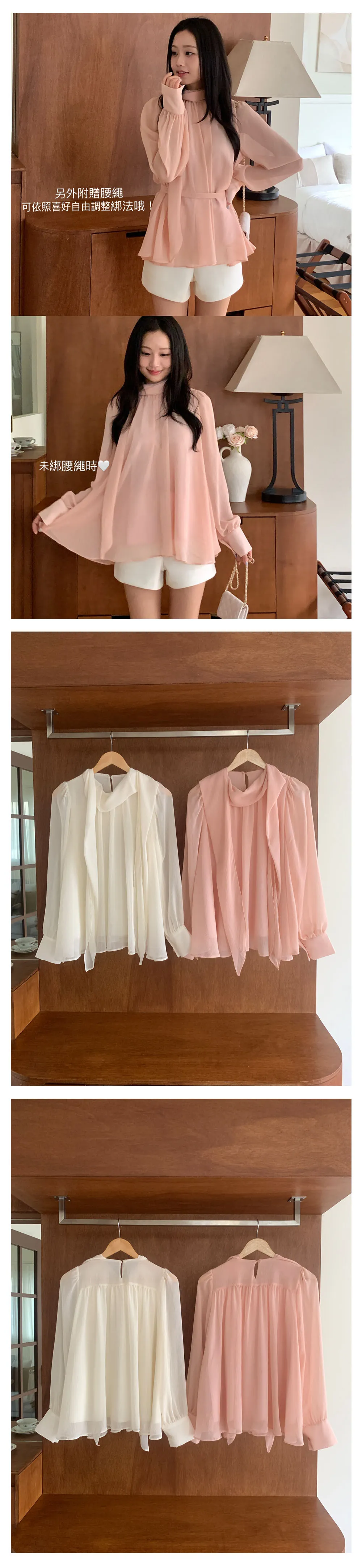 附腰繩♥女神雪紡綁繩上衣-2colors